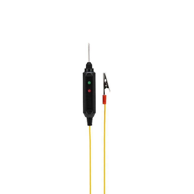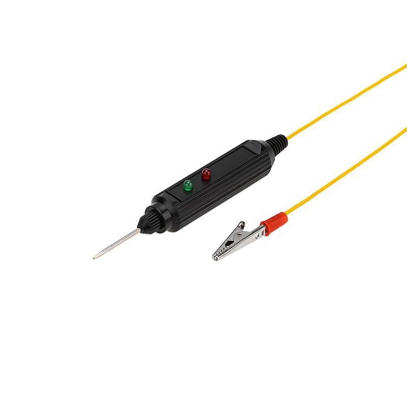Универсальный автотестер REXANT со звуковой и световой индикацией предназначен для быстрой и эффективной диагностики электрооборудования автомобилей. Позволяет определить полярность напряжения (+/-), выявить замыкание и обрыв проводки или проверить предохранители, лампочки и диоды. Тестер выполнен из ударопрочного ABS-пластика, имеет 2 световых индикатора зеленого и красного цветов, металлический щуп. Изделие снабжено проводом с зажимом типа «крокодил». Устройство работает от 3 батареек типа LR41 (установлены в прибор). Характеристики: Звуковая индикация: да Световая индикация: да Диапазон измерения напряжения: 6-24 В Питание: от батареек 3хLR41 Цвет тестера: черный Цвет оплетки провода: желтый Преимущества: Компактность прибора Наличие звуковой прозвонки