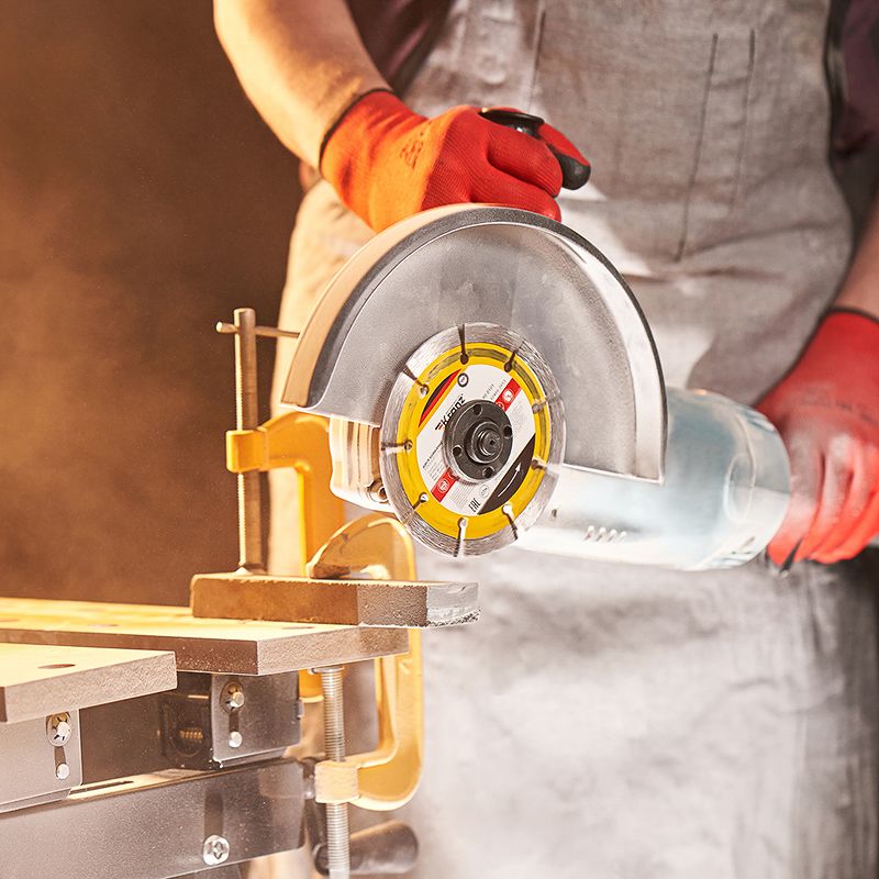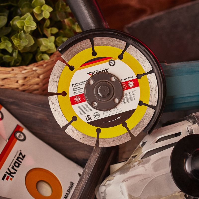 Сегментный алмазный отрезной диск предназначен для сухой резки строительных материалов, таких как природный и искусственный камень, армированный и неармированный бетон, кирпич, керамика, керамогранит. Используется в угловых шлифовальных машинах, ручных электрических плиткорезах, а также в штроборезах. Диск состоит из стального корпуса и алмазных сегментов, с высотой рабочей кромки 10 мм, что обеспечивает эффективную резку материала и долгий срок службы самого диска. Благодаря сегментированной форме диска достигается наиболее быстрый рез. Процесс резки сопровождается воздушным охлаждением. Срок годности не ограничен. Хранить в сухом прохладном месте. Использовать строго по назначению. Внимание! Запрещается использовать диск для резки металлов. При установке диска руководствуйтесь стрелкой направления вращения диска. Используйте средства индивидуальной защиты. Не утилизируйте с бытовыми отходами.