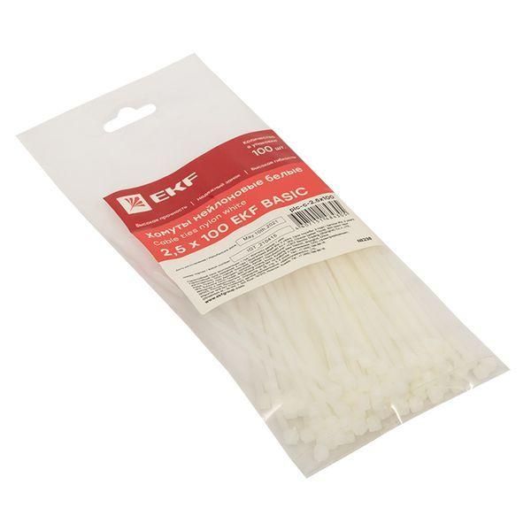 Хомут кабельный 2.5х100 нейл. бел. (уп.100шт) EKF plc-c-2.5x100