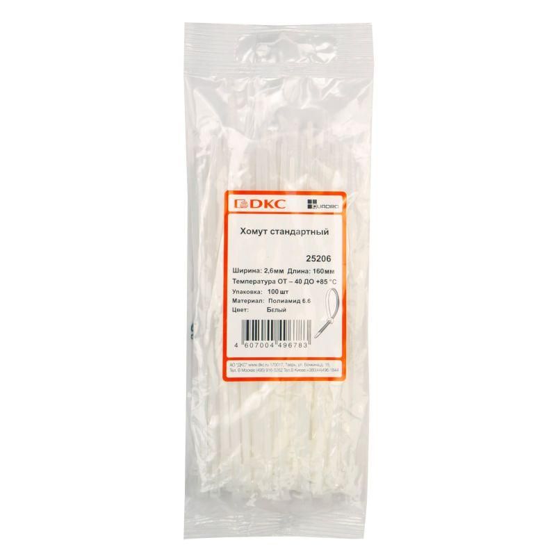 Хомут кабельный 2.6х160 полиамид бел. (уп.100шт) DKC 25206