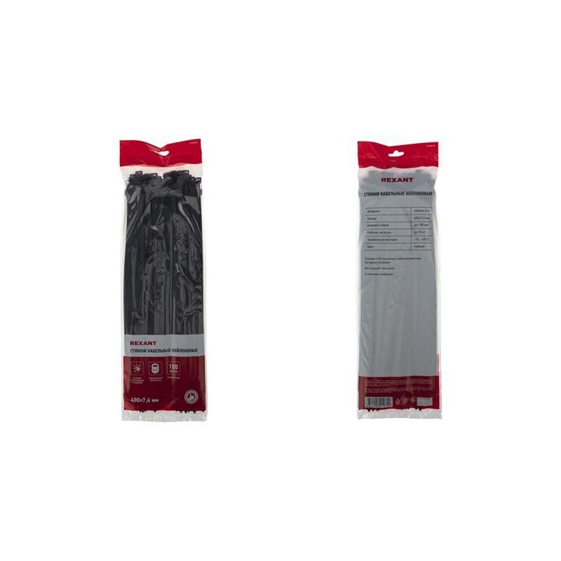 Хомут кабельный 7.6х400 нейл. черн. (уп.100шт) Rexant 07-0401-8