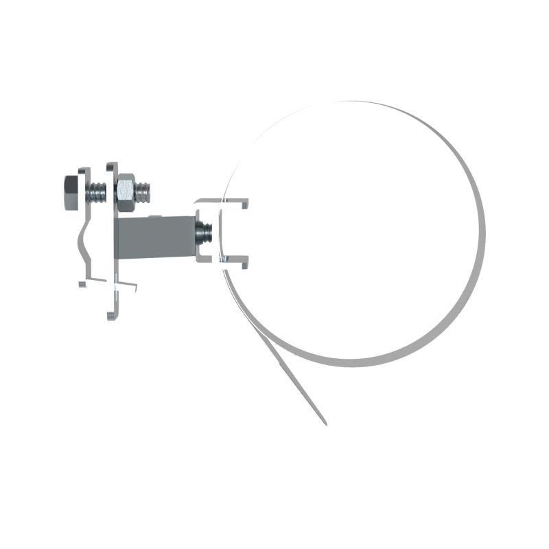 Хомут на металлические трубы применяется для для крепления круглого (8-10 мм) либо плоского (25 мм) проводника к водосточной трубе. Способ крепления проводника - болтовой зажим, материал - нержавеющая сталь. Диапазон зажима трубы - 80-160 мм.