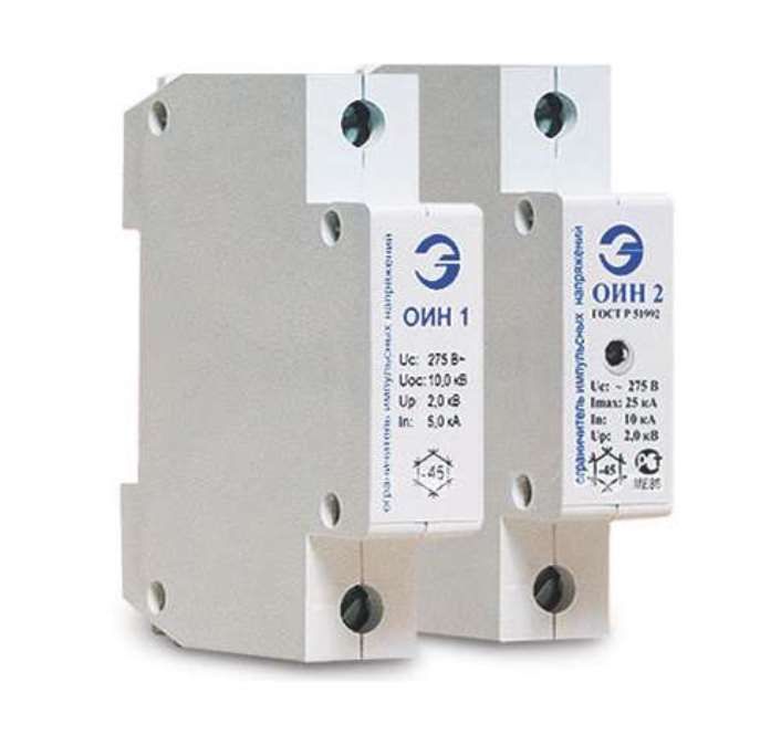 Предназначены для защиты электрооборудования и бытовых приборов от грозовых и импульсных перенапряжений. ОИН1 - без индикатора рабочего состояния; ОИН2 - с индикатором рабочего состояния. Ограничитель импульсных напряжений (ОИН) обеспечивает: • Максимальное длительное рабочее напряжение 275 В частотой 50 Гц • Рабочий потребляемый ток при напряжении 275 В не превышает 0,7 мА • Выполнен в виде унифицированного модуля шириной 17,5 мм для монтажа на рейке 35/7мм • Выдерживает воздействие импульсов комбинированной волны с напряжением разомкнутой цепи 10,0 кВ и с током короткозамкнутой цепи 5 кА • Обеспечивает защиту оборудования от импульсного перенапряжения категории II по ГОСТ Р 50571.19-2000 (уровень напряжения защиты 2,0 кВ) • Выдерживает без повреждений воздействие временного перенапряжения 380 В • Классификация по тепловой защите: ОИН1 и ОИН2 - без тепловой защиты. • Классификация по наличию индикатора состояния: ОИН1 - без индикатора; ОИН1С (по дополнительному заказу) - со световым индикатором наличия напряжения сети; ОИН2 - со световым индикатором рабочего состояния. • Классификация по ремонтопригодности: ОИН1 и ОИН2 - моноблочные (неремонтируемые в условиях эксплуатации). • Допускает присоединение проводников сечением от 4 до 16 мм