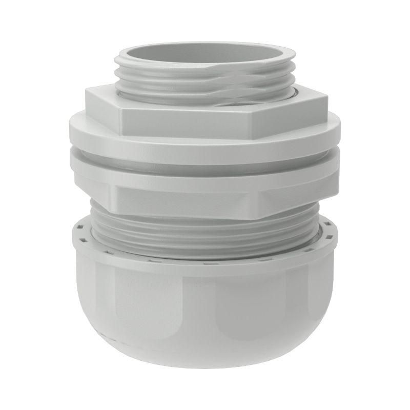 Переходник "Армированная труба - коробка" для герметичного соединения гибких армированных труб с ответвительными коробками, корпусами шкафов и боксов. Диаметр - 20 мм. Материал: полипропилен. Степень пыле- и влагозащиты IP65. Цвет серый RAL 7035. Элемент системы может эксплуатироваться при широком диапазоне температур: от –25°С до +60 °С.
