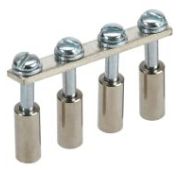 Винтовая перемычка состоит из токоведущей шины, втулок и винтов и представляет из себя готовое изделие для применения. Перемычка подключается при помощи встроенного винта к клемме через отверстие в середине клеммы. Они доступны в стандартной комплектации с 2, 3, 4 или 10 полюсами.