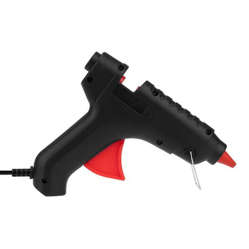 Клеевой пистолет предназначен склеивания поверхностей различных материалов, герметизации стыков и швов, фиксации проводов с помощью расплавленной клеевой массы. Используется в ремонте, декорировании, в изготовлении поделок и моделировании; будет полезен как на производстве, так и в быту. Корпус пистолета изготовлен из ударопрочной пластмассы, поэтому инструмент служит дольше, а металлическая скоба позволяет устанавливать пистолет в режиме ожидания. Сопло пистолета защищено клапаном от произвольного вытекания клея и оснащено термостойким силиконовым протектором, минимизирующим риск ожогов при случайном контакте и защищающим рабочую зону от высокой температуры. Пистолет используется с клеевыми стрежнями диаметром 11 мм. Комплектация: клеевой пистолет (1 шт.), паспорт (1 шт.). ОСНОВНЫЕ ПРЕИМУЩЕСТВА 1. Быстрый нагрев. 2. Защита от произвольного вытекания клея из плавильной камеры. 3. Стабильная температура при постоянной работе. 4. Термостойкий силиконовый протектор сопла с длительным сроком службы. 5. Возможность управления одной рукой, легкий контроль плавления и подачи клея.