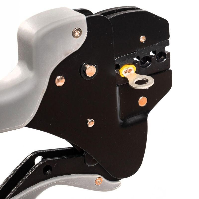 • В комплекте: • пресс-клещи CTF • шестигранный ключ • запасные винты для крепления матриц • прочный пластиковый кейс • набор из 5 сменных матриц: • Изолированные наконечники: НКИ, НВИ, НШКИ, НШПИ, РПИ, РППИ-М, РШИ, РПИ-О, ГСИСечения: 0.5–6.0 мм2Трехпозиционная матрицаПрофиль обжима:овальный двухконтурный • Втулочные наконечники: НШВИ, НШВСечения: 0.25–6.0 мм2Восьмипозиционная матрицаПрофиль обжима:трапециевидный • Втулочные наконечники: НШВИ, НШВСечения: 6–16 мм2Трехпозиционная матрицаПрофиль обжима: трапециевидный • Неизолированные разъемы (автоклеммы) шириной 2.8/4.8/6.3/7.5 мм, наконечники НК, гильзы ГССечения: 0.5–6.0 мм2Трехпозиционная матрицаПрофиль обжима: лепестковый двухконтурный • Неизолированные медные наконечникиСечения: 0.5–10 мм2Четырехпозиционная матрицаПрофиль обжима: клиновидный • Пресс-клещи CTF несовместимы с матрицами МПК (КВТ) • Параллельное смыкание матриц, гарантирующее равномерный обжим и высокое качество опрессовки • Усовершенствованный рычажный механизм. Усилие при опрессовке на 30% меньше, чем при использовании аналогичного инструмента • Храповой механизм, обеспечивающий блокировку обратного хода до завершения полного цикла опрессовки • Регулятор прижимного усилия матриц • Блокиратор рукояток • Вес набора/инструмента: 1.10/0.50 кг • Длина: 215 мм • Габариты кейса: 285х155х50 мм