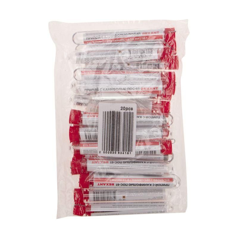 Припой с канифолью REXANT представляет собой проволоку (диаметром 1 мм) из сплава олова (61 %) и свинца (39 %). Используется в пайке для соединения деталей между собой и позволяет создать герметичный, механически прочный (устойчивый) шов. Нагреваясь до температуры плавления (183...188 °С) припой: расплавляется, смачивает спаиваемый металл и, растекаясь по нему — заполняет место между соединяемыми деталями. В свою очередь флюс канифольный активный (MC-20A) помогает сделать паянное соединение более прочным! Убирая окислительную плёнку со спаиваемых поверхностей и защищая их от дальнейшего окисления при пайке. Содержание флюса в припое — 2,2 %. Как видно из вышесказанного припой с канифолью REXANT — самое что ни на есть «два в одном»: припой и флюс в колбах по 10 грамм.