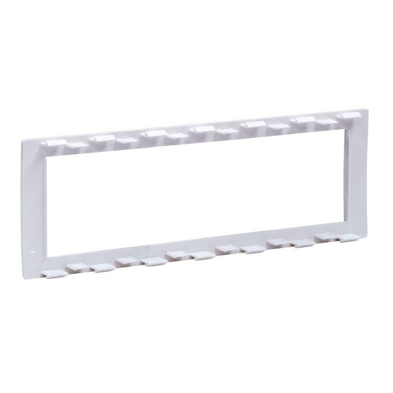 Рамка универсальная 6-модульная для ЭУИ. Назначение: монтаж ЭУИ серий "Viva" и типоразмера 45х45 мм в пластиковые короба серии "In-liner Front", алюминиевые короба и колонны "Aero", лючки и напольные башенки BUS. Характеристики: материал – АБС-пластик; универсальная - устанавливается поверх каркасов: F0000M, F0000MB, F0000A, F0000L; 2-модульная рамка устанавливается поверх одного 2-модульного каркаса; 4-модульная рамка - поверх двух 2-модульных каркасов; 6-модульная рамка - поверх трех 2-модульных каркасов. Цвет: Белый