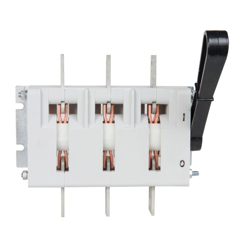 Выключатель-разъединитель 3 полюсный на номинальный ток 400 А, в котором установлена несъемная рукоятка.
