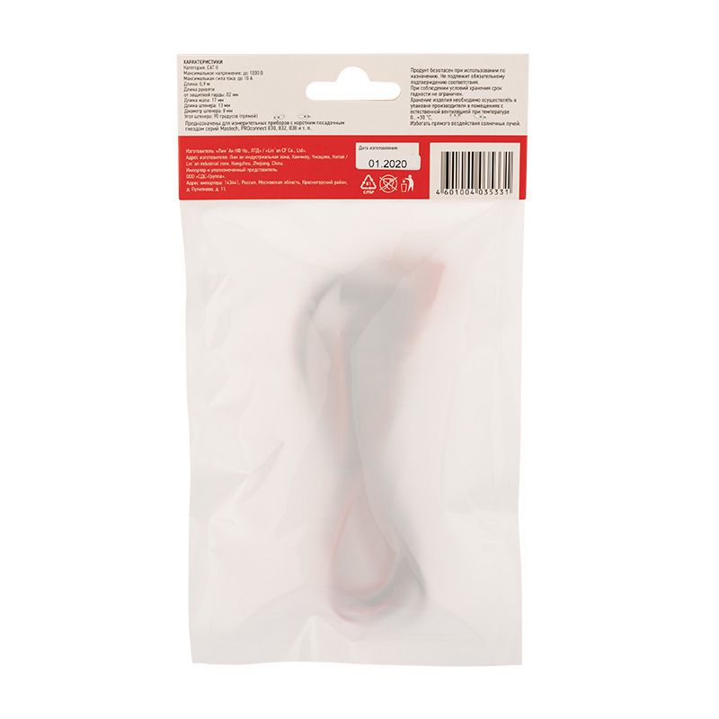 Щупы REX07 REXANT для тестера и токовых клещей. Они подсоединяются к гнездам мультиметра, для удобства имеют разные цвета: черный и красный. Как правило, черный щуп подключается на общее гнездо, а красный — на гнездо «+». Клеммы, провода и ручки щупов надежно изолированы для защиты пользователя от поражения электрическим током. Для удобства работы металлические концы щупов заострены. Класс защиты от перенапряжения: Категория 2 до 1000 В 10 А Длина: 850 мм Длина рукояти от защитной гарды: 82 мм Длина жала: 17 мм Длина штекера: 13 мм Диаметр штекера: 8 мм Угол штекера: 90 градусов (прямой) Подходят для недорогих приборов с коротким посадочным гнездом, серий MASTECH, PROconnect, 830, 832, 838 и т. п.