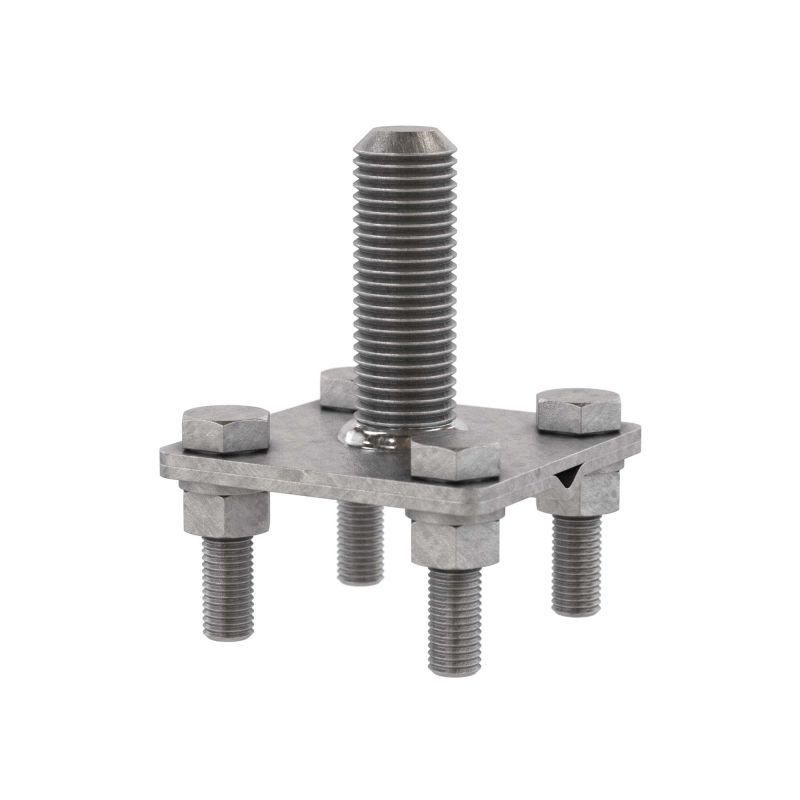 Соединитель применяется для подключения круглого (8-10 мм) либо плоского (25 мм) проводника к молнеприемному стержню. Соединитель устанавливается в бетонное основание путем ввинчивания. Диаметр резьбы - 16 мм. Материал - горячеоцинкованная сталь.
